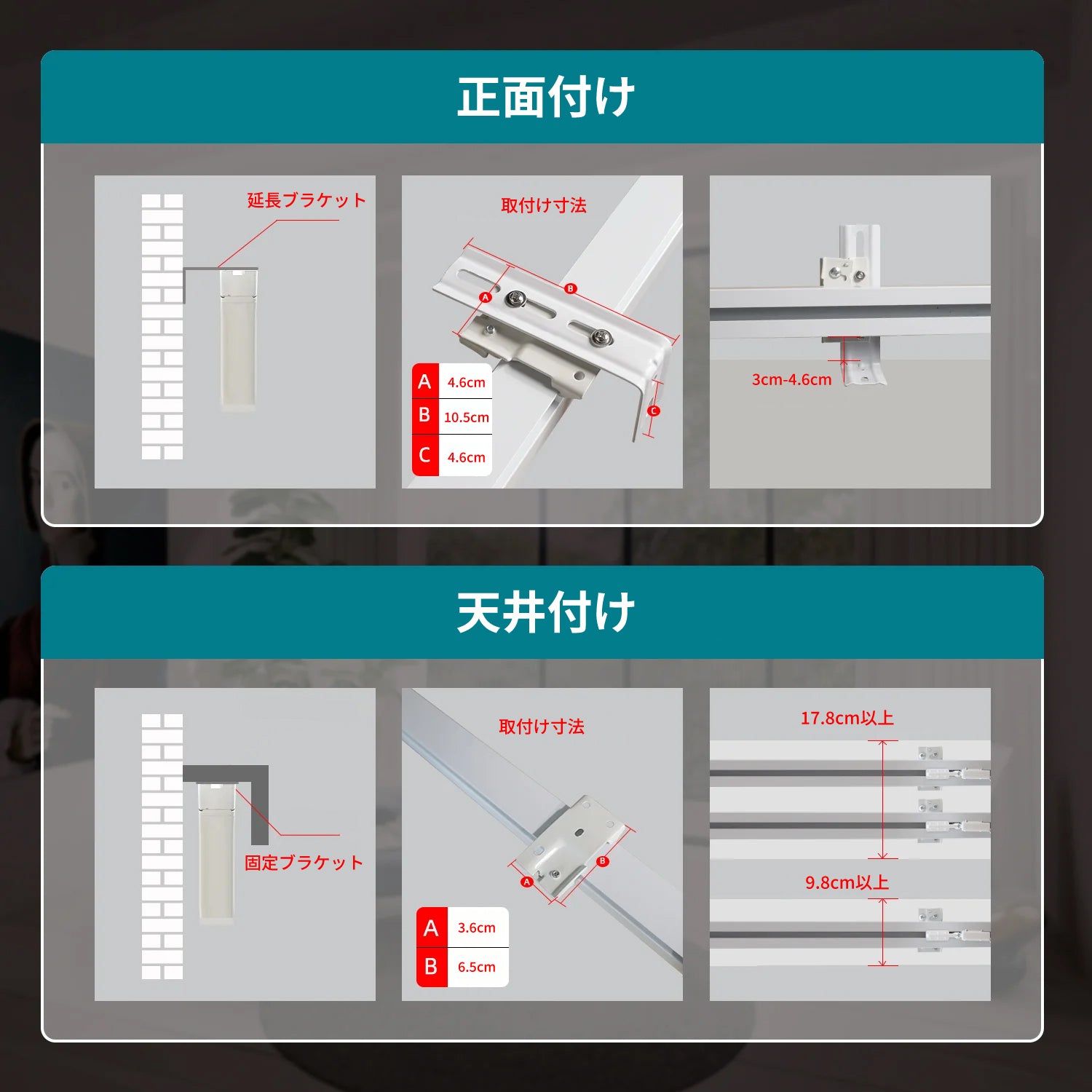 スクエア式のタイプは最小 5 cmの奥行きが必要で、カッテンボックスは約3cm突出します。推奨奥行きは8 cm以上です。